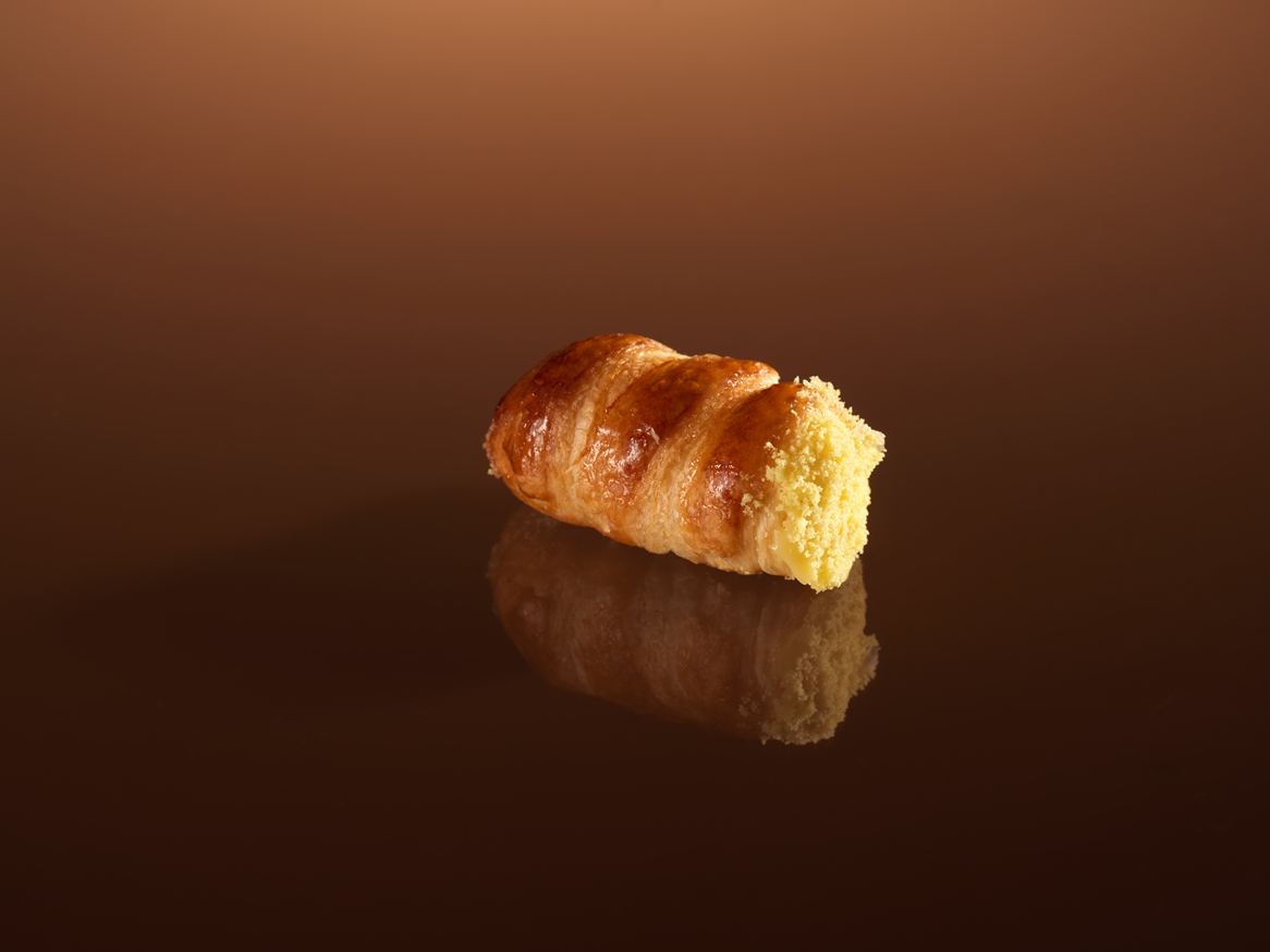 Croccante pasta sfoglia arricchita da abbondante crema pasticcera chiusa con fine granella di pan di spagna