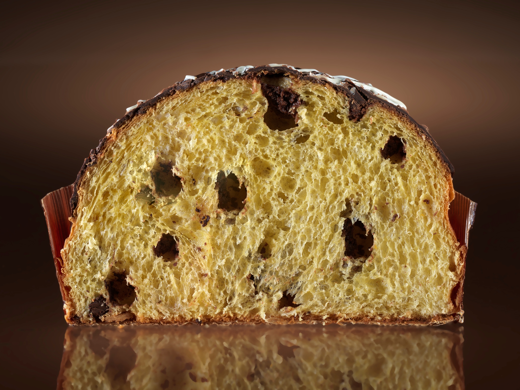 Pepite di cioccolato fondente e cubetti di pere, esaltano i sentori aromatici del burro e della vaniglia.