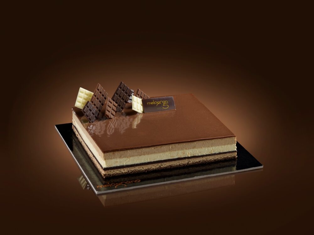 mousse cioccolato gianduia: (LATTE, tuorlo D’UOVO, zucchero, gelatina alimentare, acqua, PANNA 38%, cioccolato gianduia: (zucchero, pasta di NOCCIOLE, burro di cacao, pasta di cacao, emulsionante lecitina di SOIA, aroma naturale vaniglia), mousse cioccolato bianco: (LATTE, tuorlo D’UOVO, zucchero, gelatina alimentare, acqua, PANNA 38%, cioccolato bianco: (zucchero, burro di cacao, LATTE in polvere, emulsionante: lecitina di SOIA, aroma), bisquit cioccolato: (tuorlo D’UOVO, zucchero, albume D’UOVO, cacao amaro, farina senza glutine: (amido di mais, farina di grano saraceno, farina di riso, fibra di psillium, zucchero), BURRO), croccantino biscotto: (oli (girasole, palma), zucchero, frollini al cacao (zucchero, amido di frumento deglutinato, grassi (palma), emulsionante: E471; cacao in polvere, UOVA, agenti lievitanti: E450, E500; aromi, sale),NOCCIOLE, cacao in polvere, LATTE magro in polvere, siero di LATTE in polvere, emulsionante: lecitina di SOIA; aromi, sale), glassa specchio cioccolato: (acqua, zucchero, sciroppo di glucosio, LATTE, zucchero, gelatina alimentare, acqua, cioccolato fondente (pasta di cacao; zucchero; burro di cacao; emulsionante: lecitina di SOIA; aroma naturale di vaniglia))